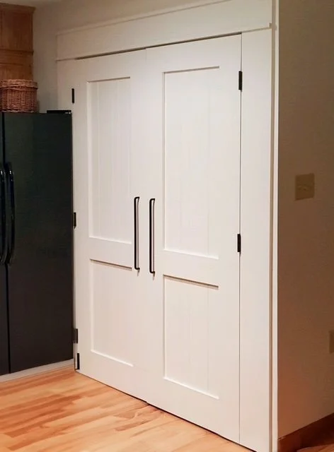 Laundry room barn doors and trim.